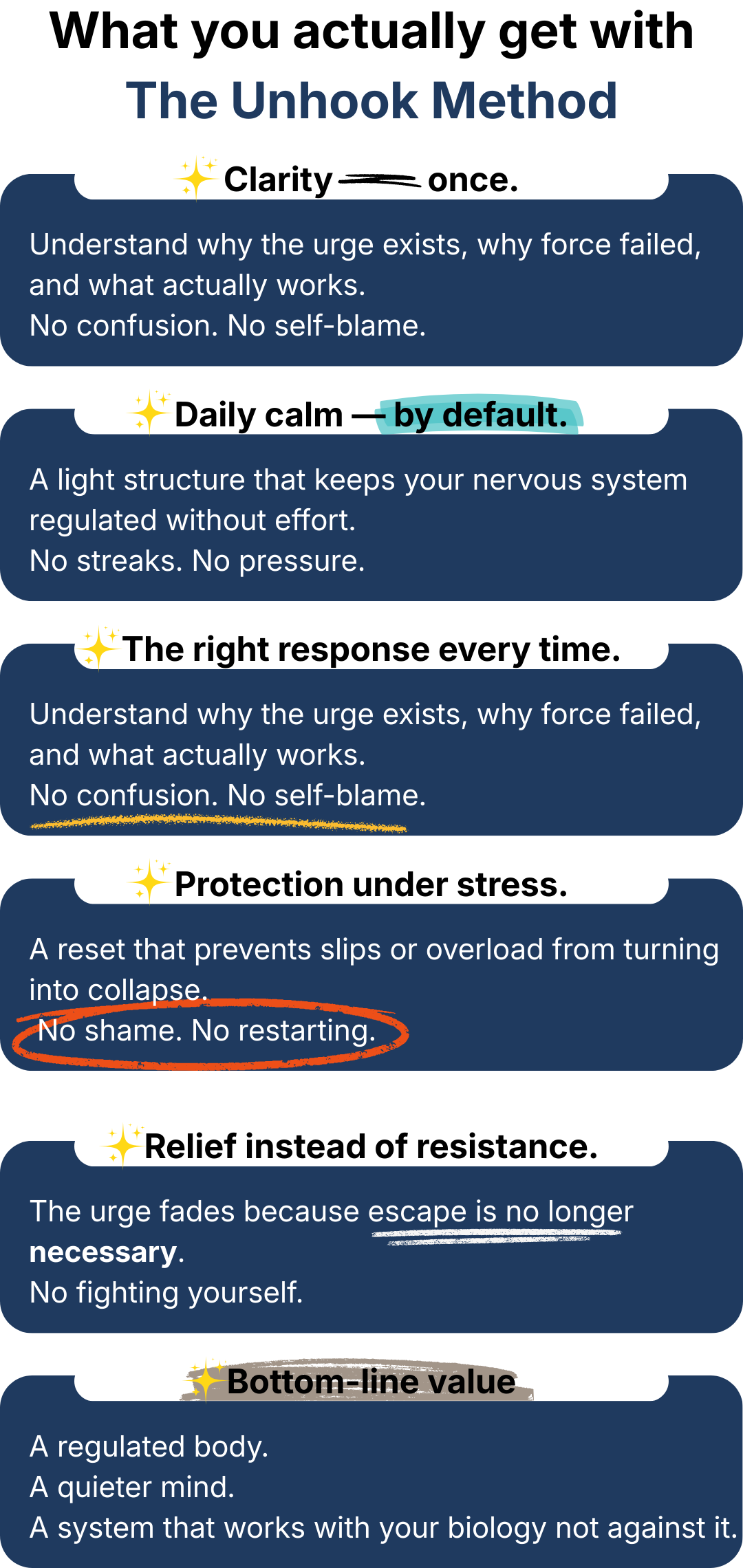 Because this doesn’t ask you to fight urges. It calms the system that creates them.